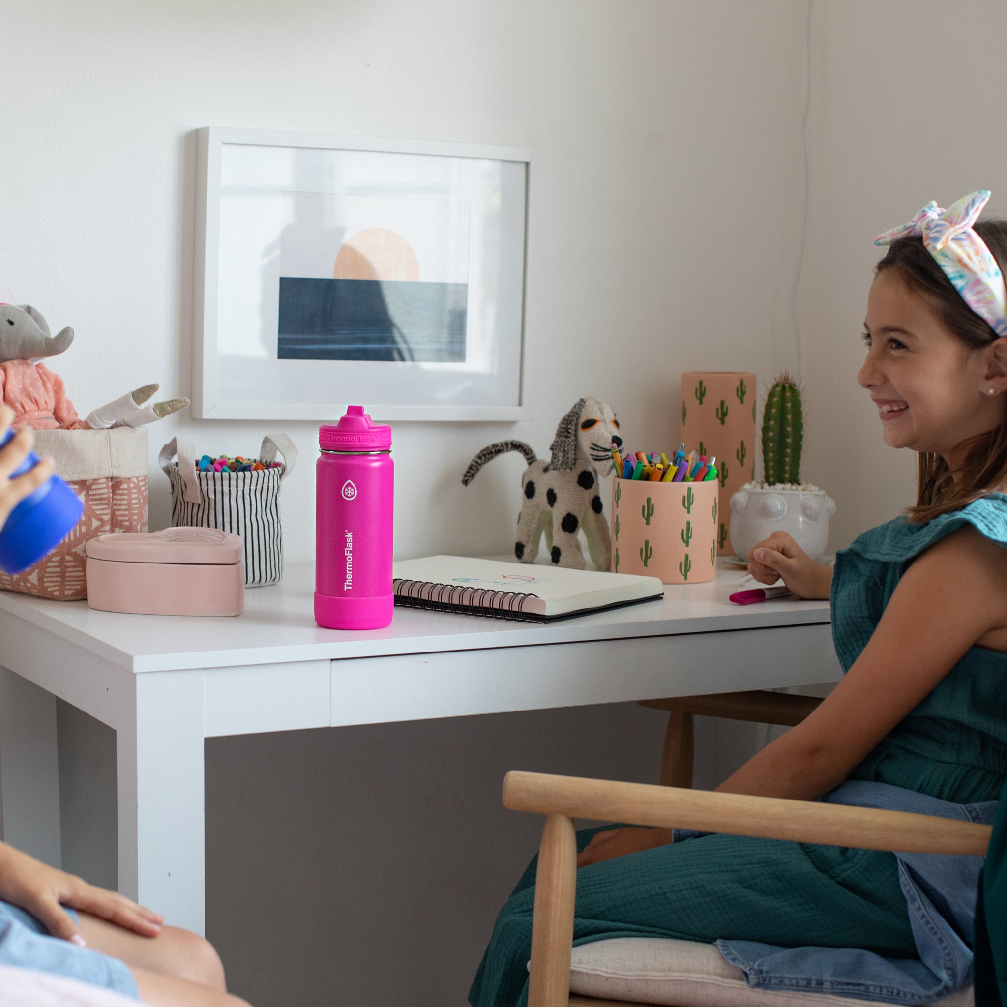 - Includes 2 x 16oz ThermoFlask® Kids Insulated Stainless Steel Water Bottles with Straw Lid