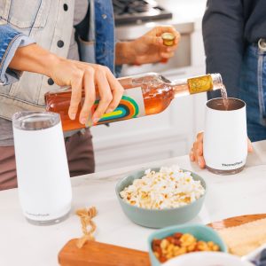 Elevate your backyard social with ThermoFlask’s 17oz Beer Glass 2-pack. Where’s the handle. you ask? It doesn’t need one! Warm hands (and hot afternoons) are no match for Temp-Lock™ insulated technology that locks in ice-cold temperatures and keeps that hoppy goodness hoppin’ for hours. With extra attention to detail. like the shatterproof exterior. built-in lightweight Tritan coaster. rounded internal shape that minimizes foam when pouring. and the clear splash-proof Best Lid Ever™ that prevents beerstaches and keeps nature’s buzzing creatures away. you’re going to celebrate this sleek take on the traditional stein.