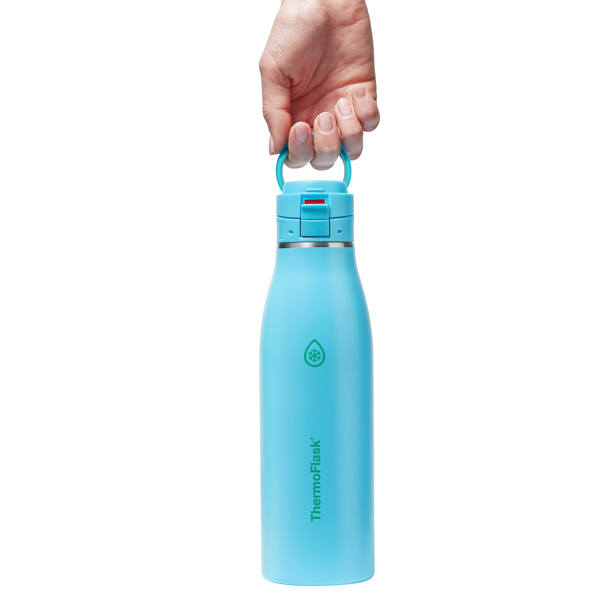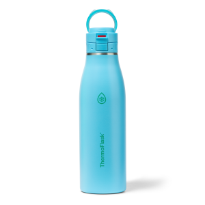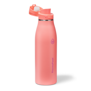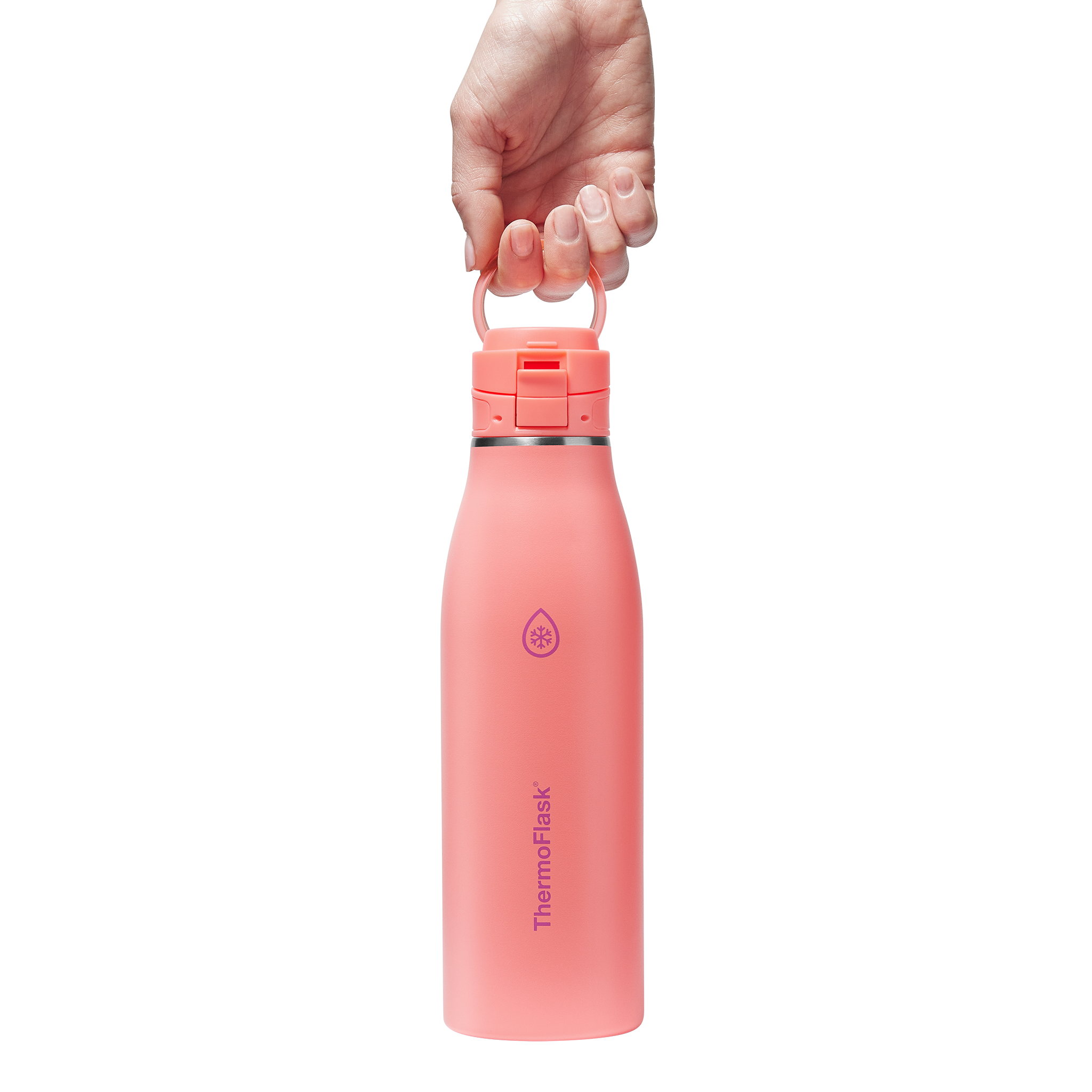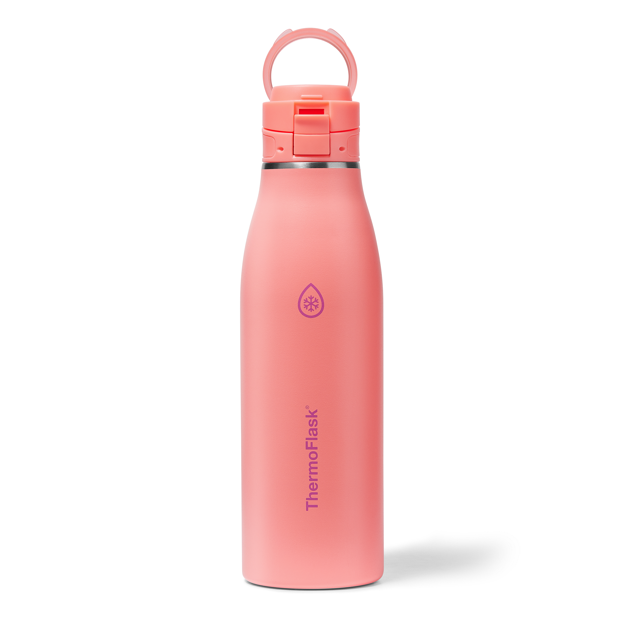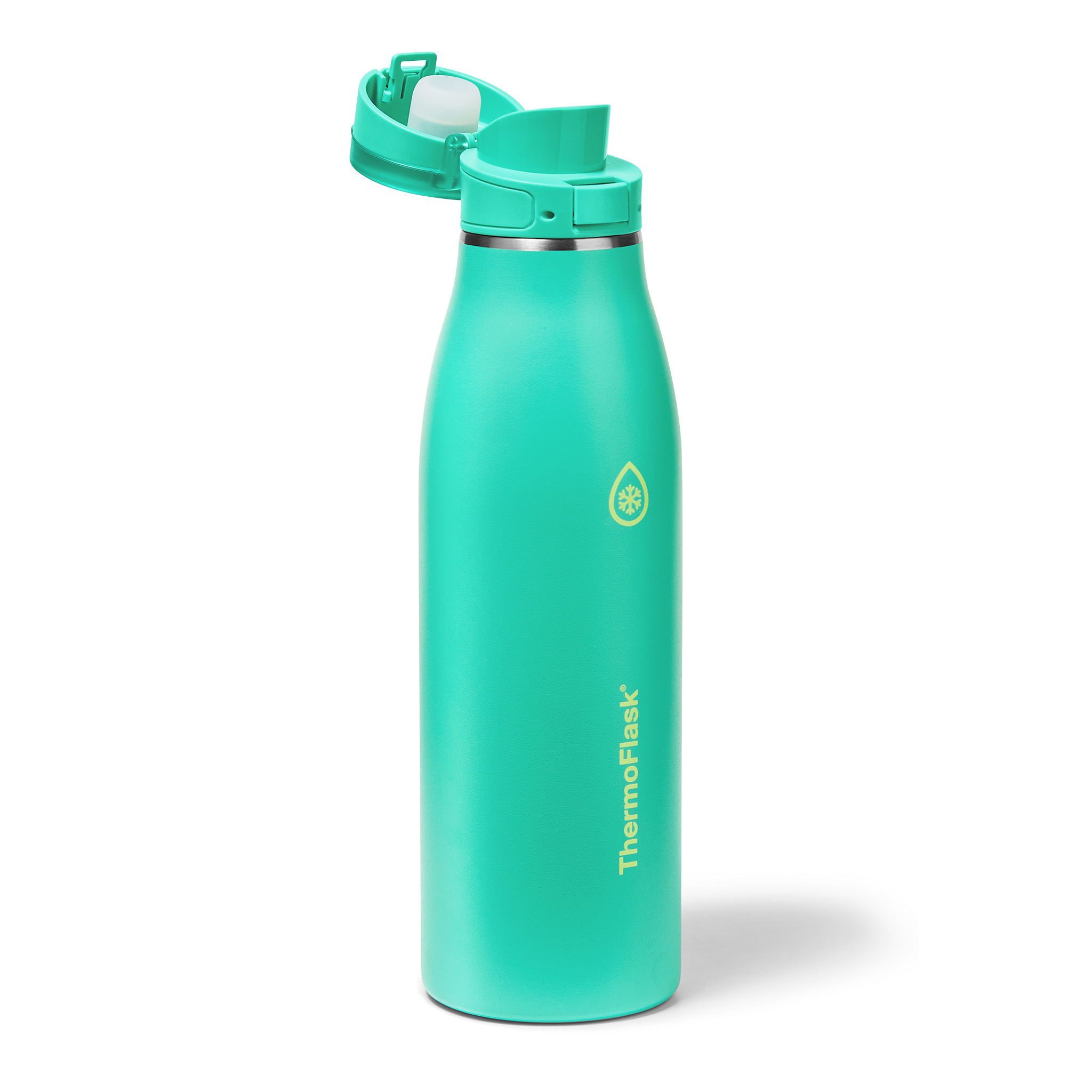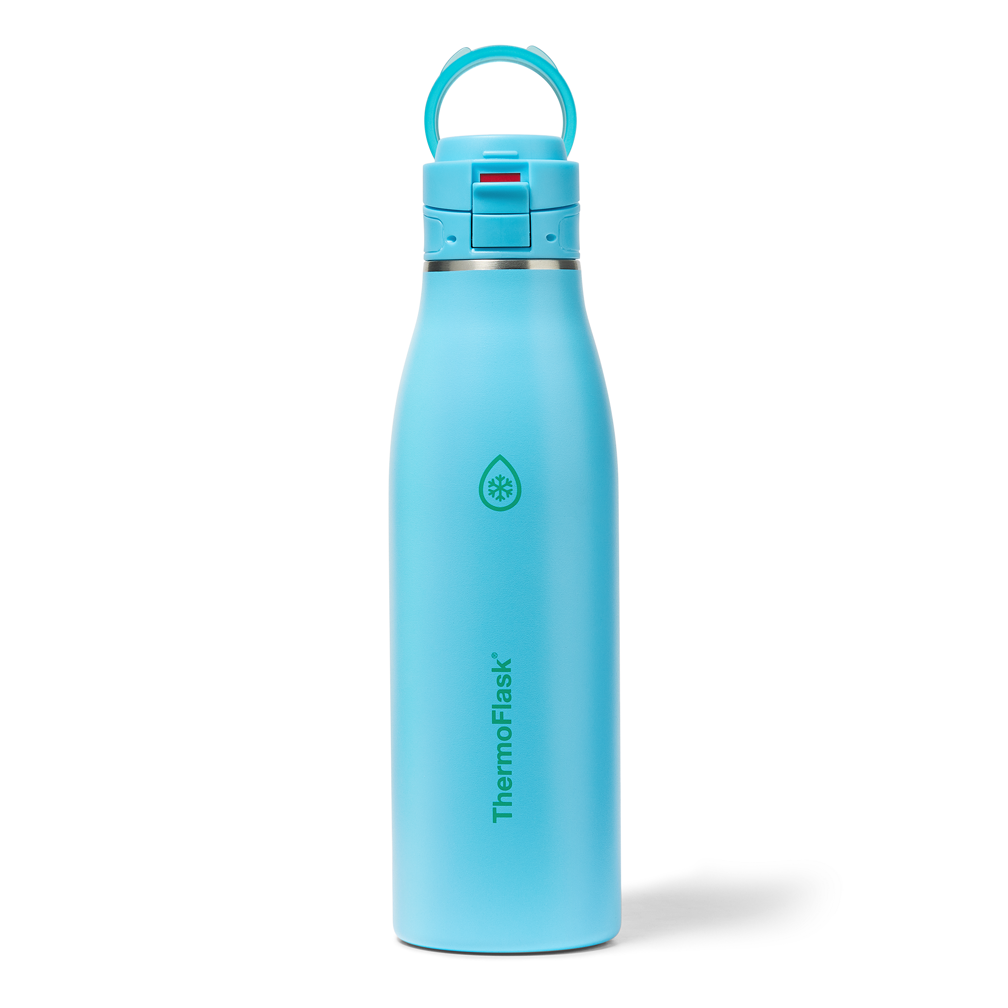 25oz Neon Traveler Bottle with bold powder coat finish. 100% leakproof comfort sip spout. cupholder-friendly design. and keeps drinks hot or cold for hours.