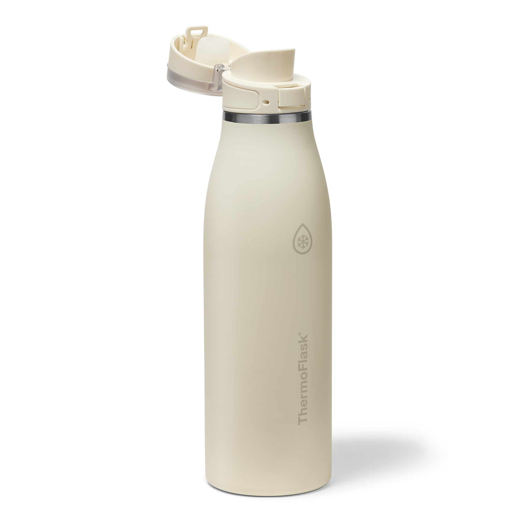 25oz ThermoFlask Soft Touch Traveler: leakproof. cupholder-friendly bottle with soft touch finish available with spout or straw lids. and all-day hot or cold drink performance.