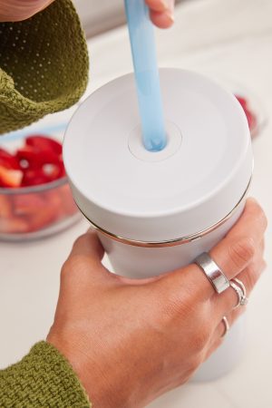 - Splash-proof gasket to prevent splashes where the straw enters the lid.