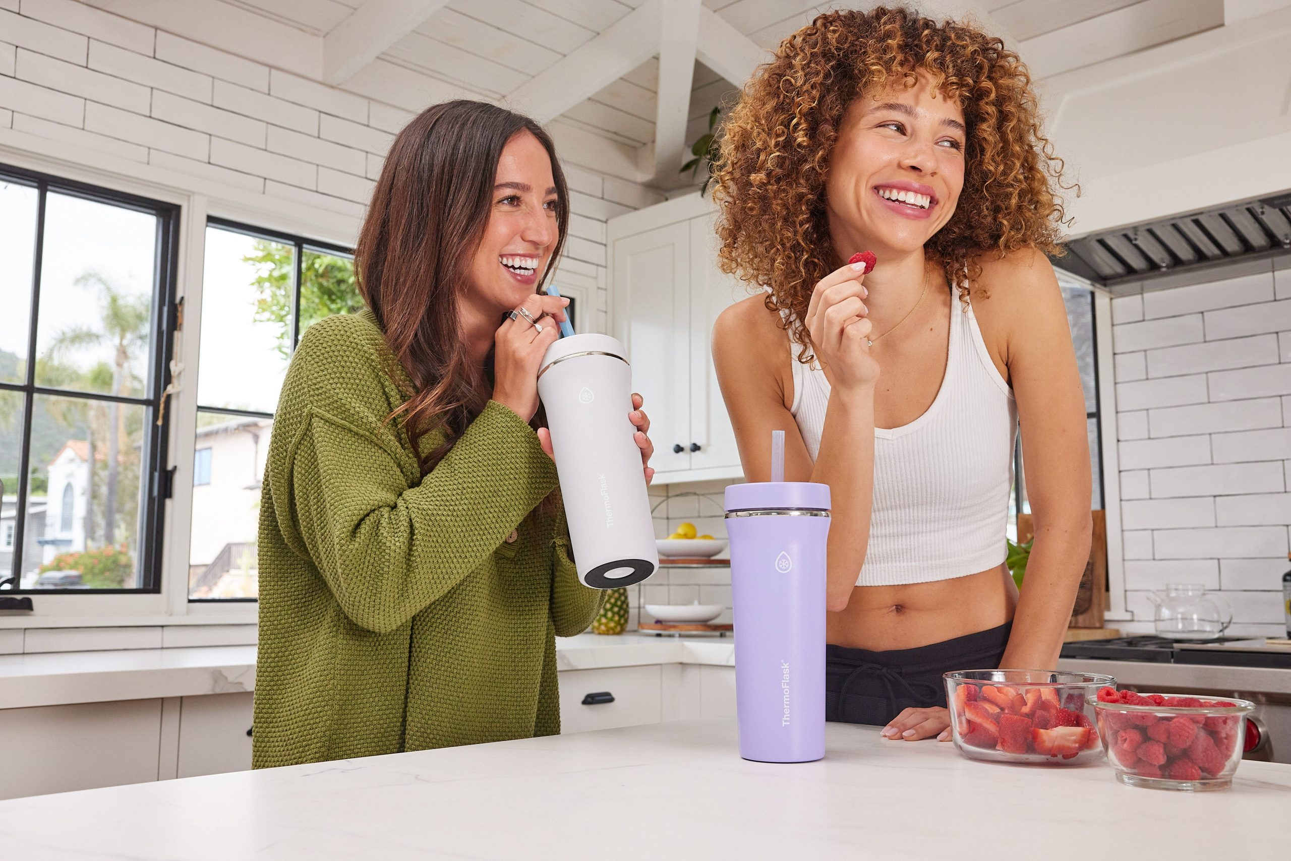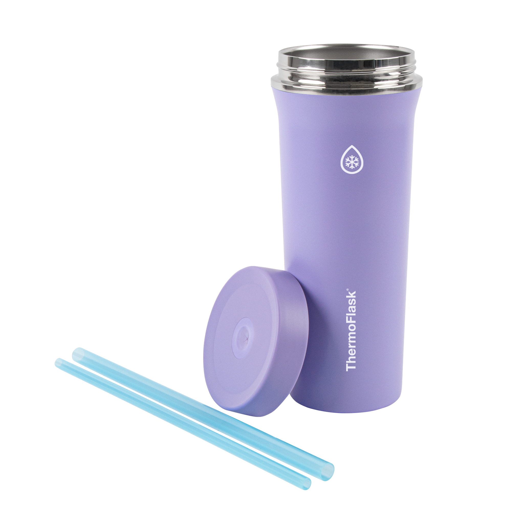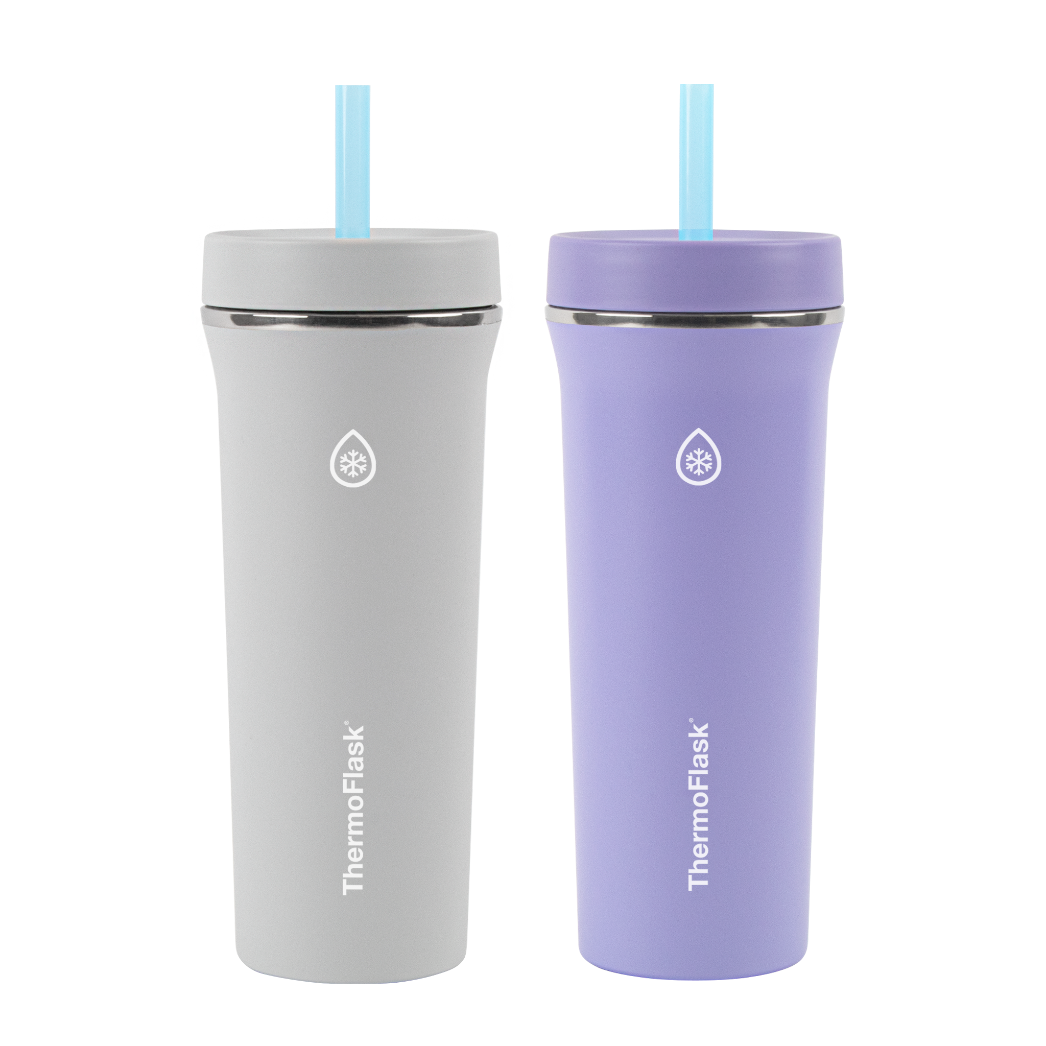 Quench your thirst on your next big adventure with the ThermoFlask 32oz Straw Tumbler 2 Pack. The reusable Tritan™ is a fan favorite so we included two: one standard size and one jumbo! No worries about spills on your daily activities because the twist-on lid’s splash-proof gasket seals snugly around both straws.