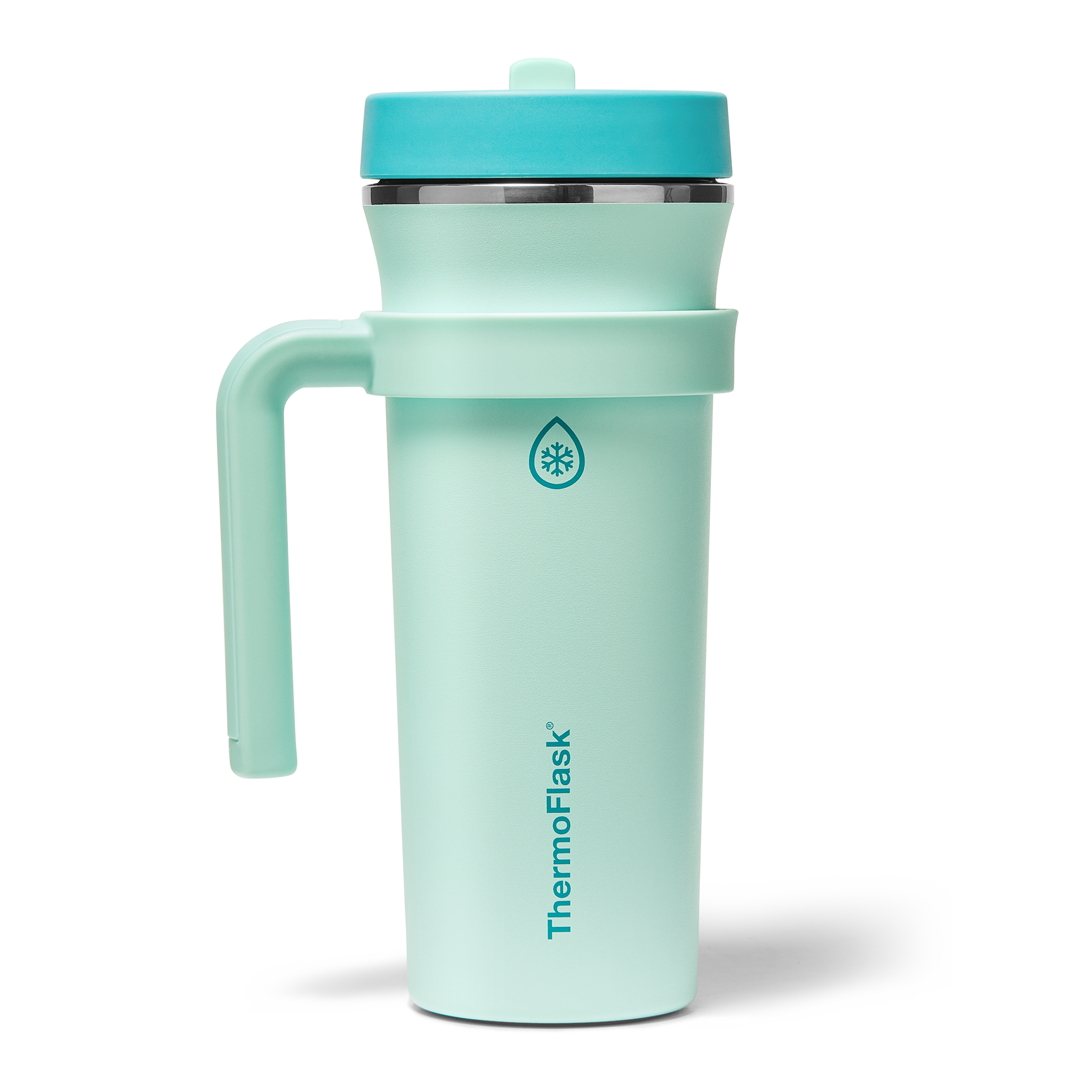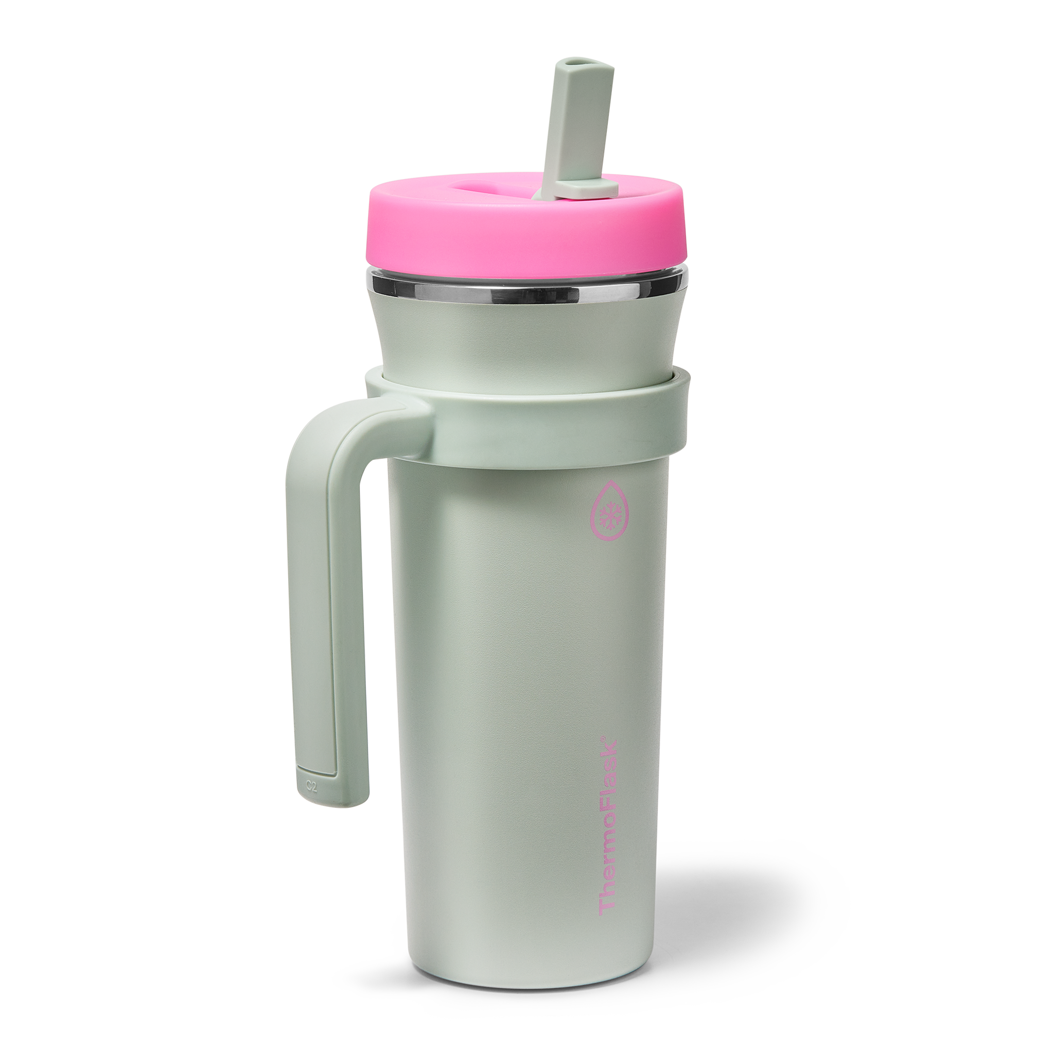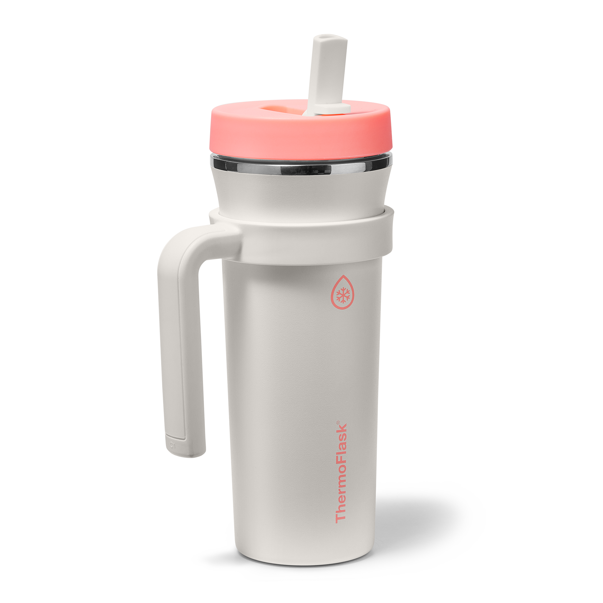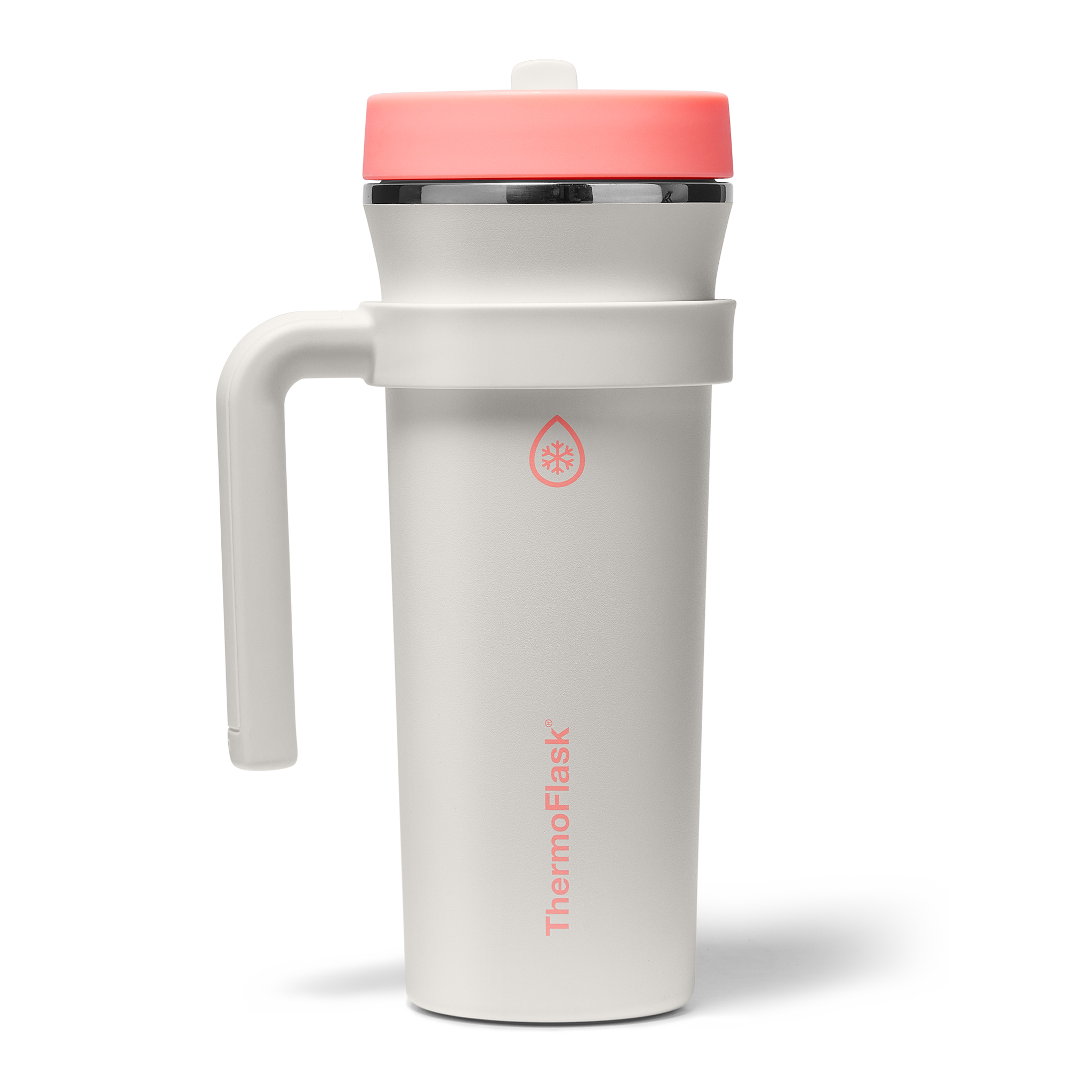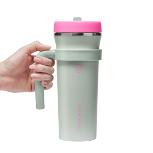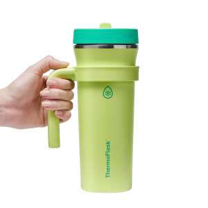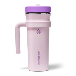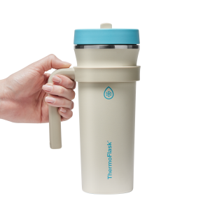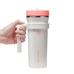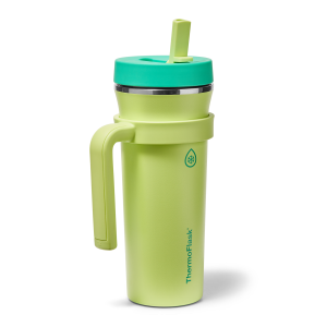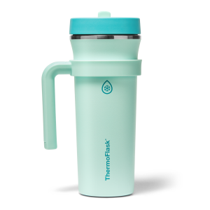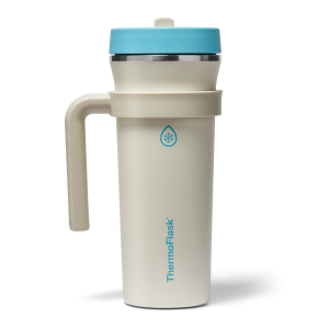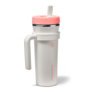The 32oz ThermoFlask Tumbler keeps things icy cold and ready to sip all day long. The leakproof. folding straw lid means no spills when it’s shut and easy sipping when it’s not. A removable handle adds grab-and-go convenience. and the soft-landing silicone coaster keeps things quiet when you set it down. Big sips. zero drama.