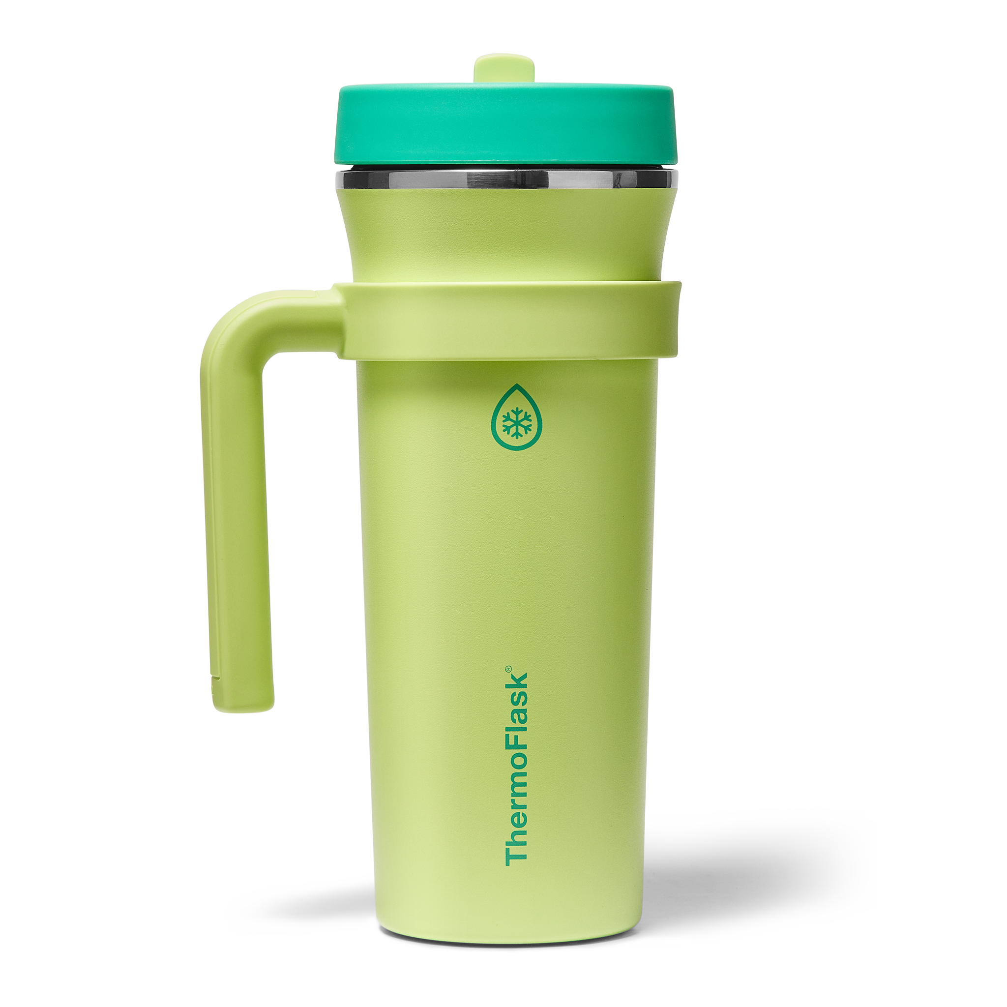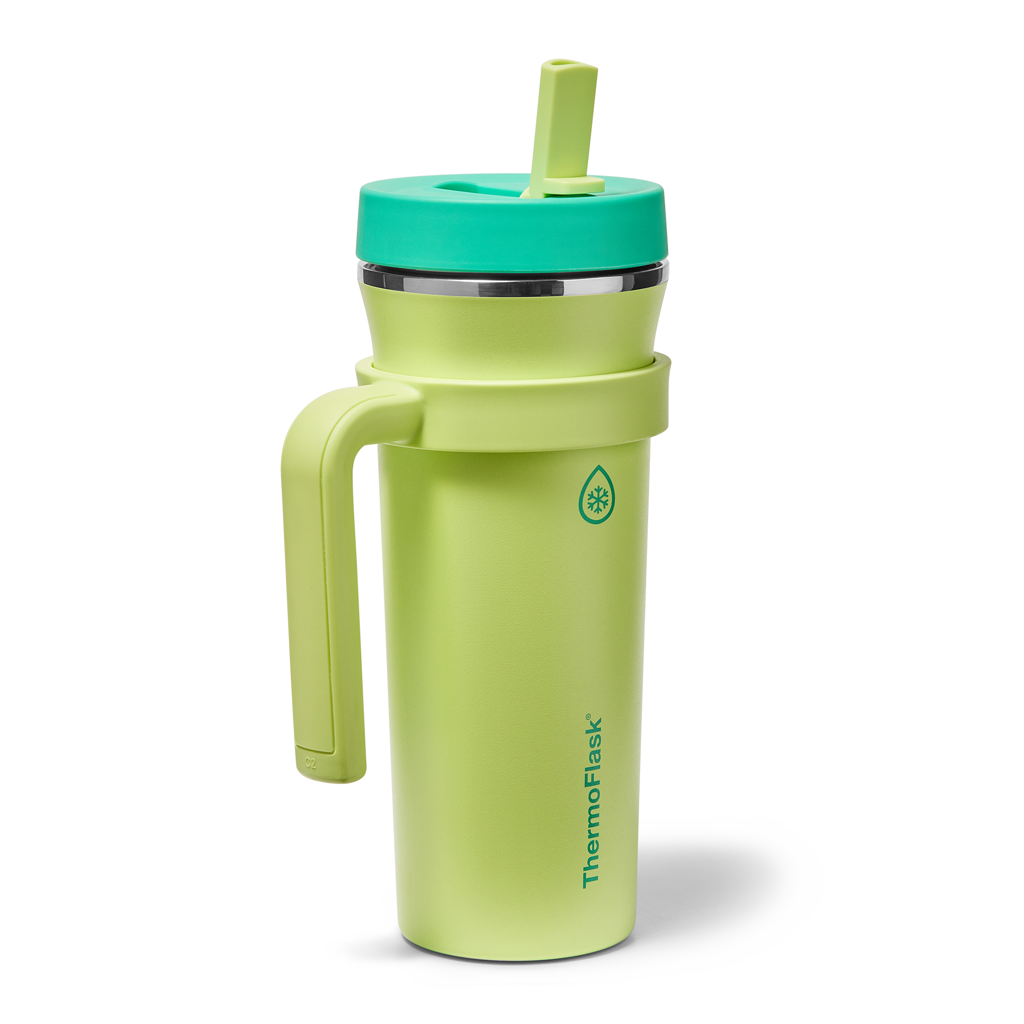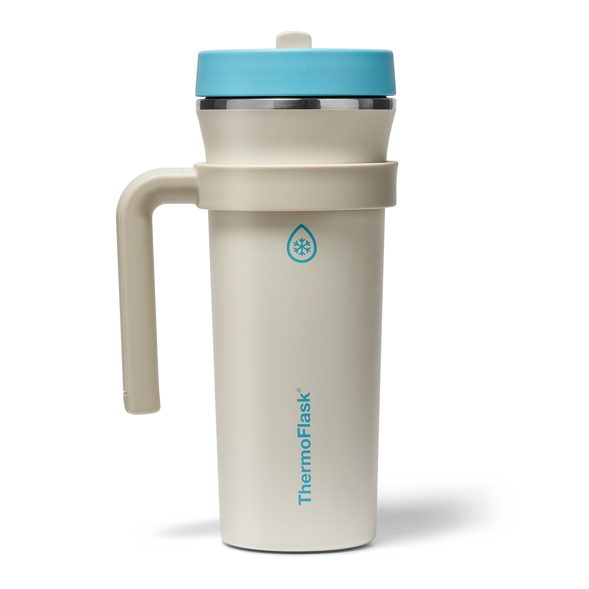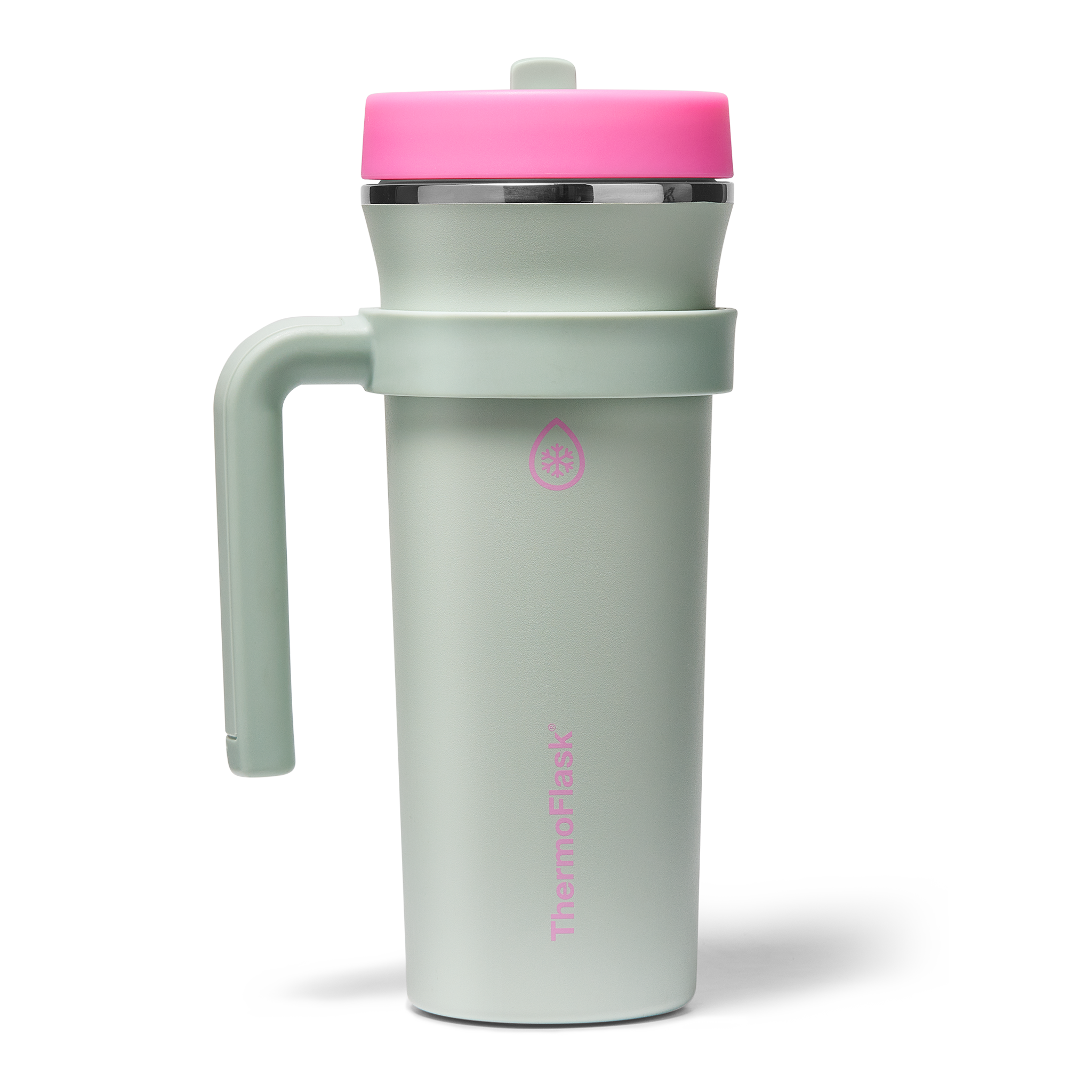 The 32oz ThermoFlask Tumbler keeps things icy cold and ready to sip all day long. The leakproof. folding straw lid means no spills when it’s shut and easy sipping when it’s not. A removable handle adds grab-and-go convenience. and the soft-landing silicone coaster keeps things quiet when you set it down. Big sips. zero drama.