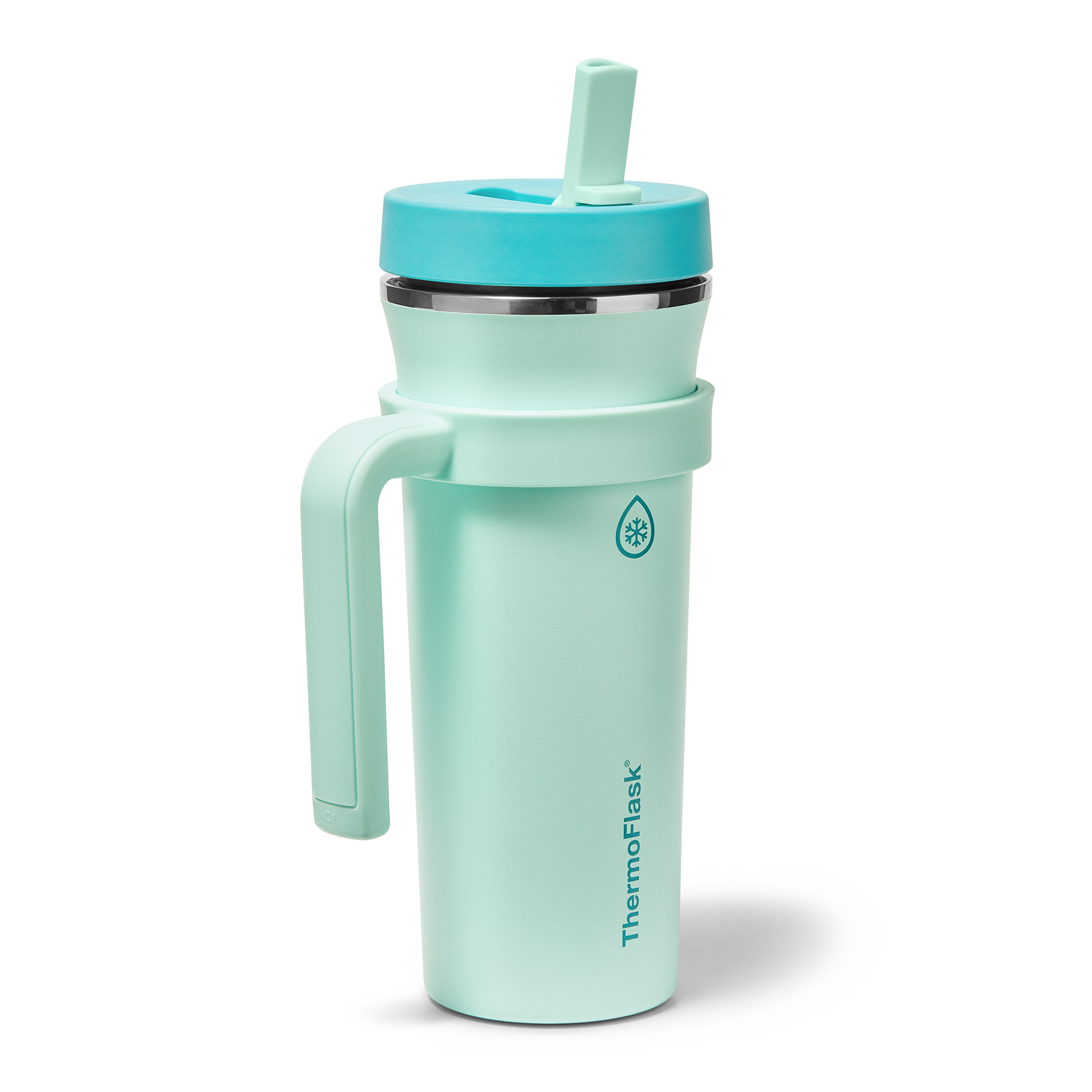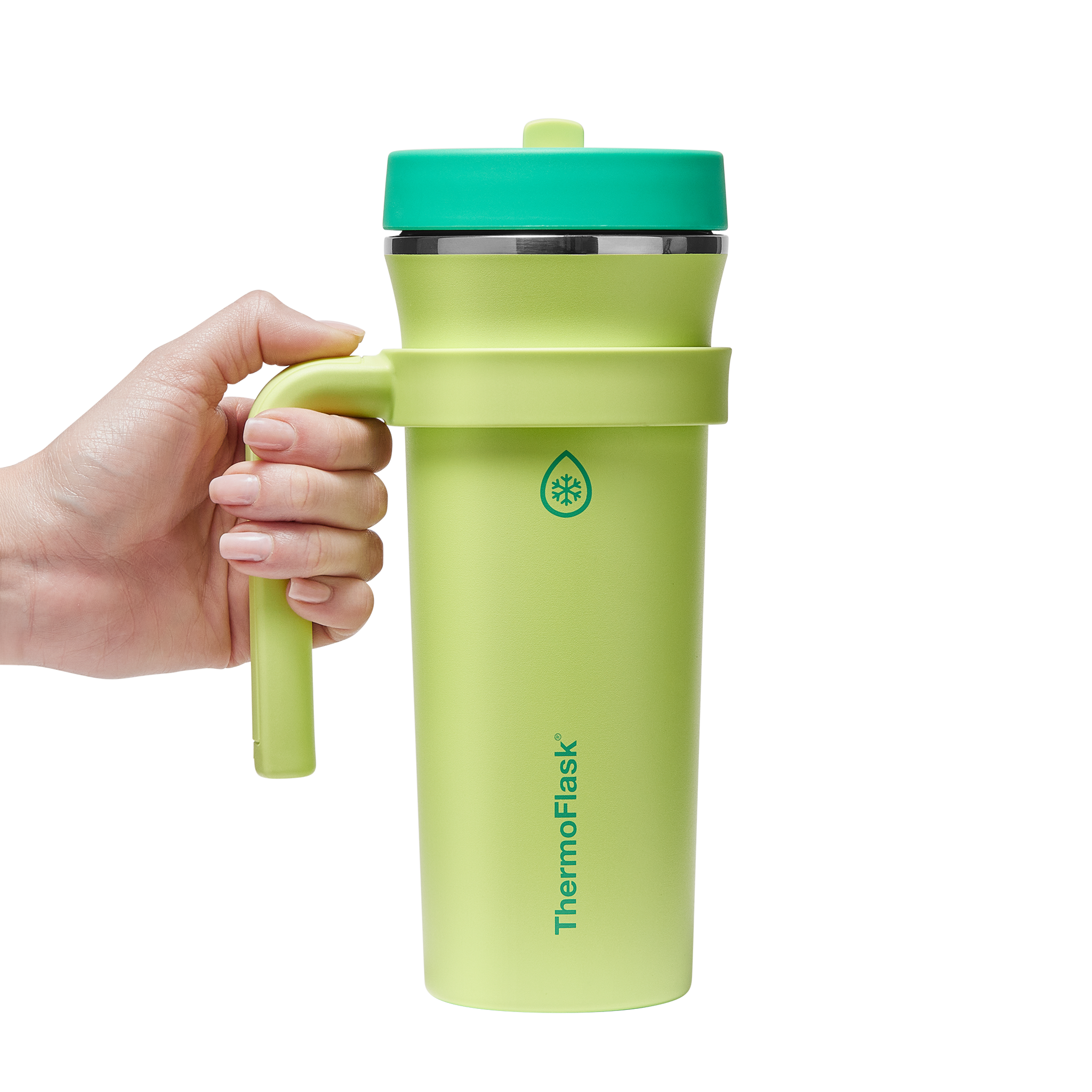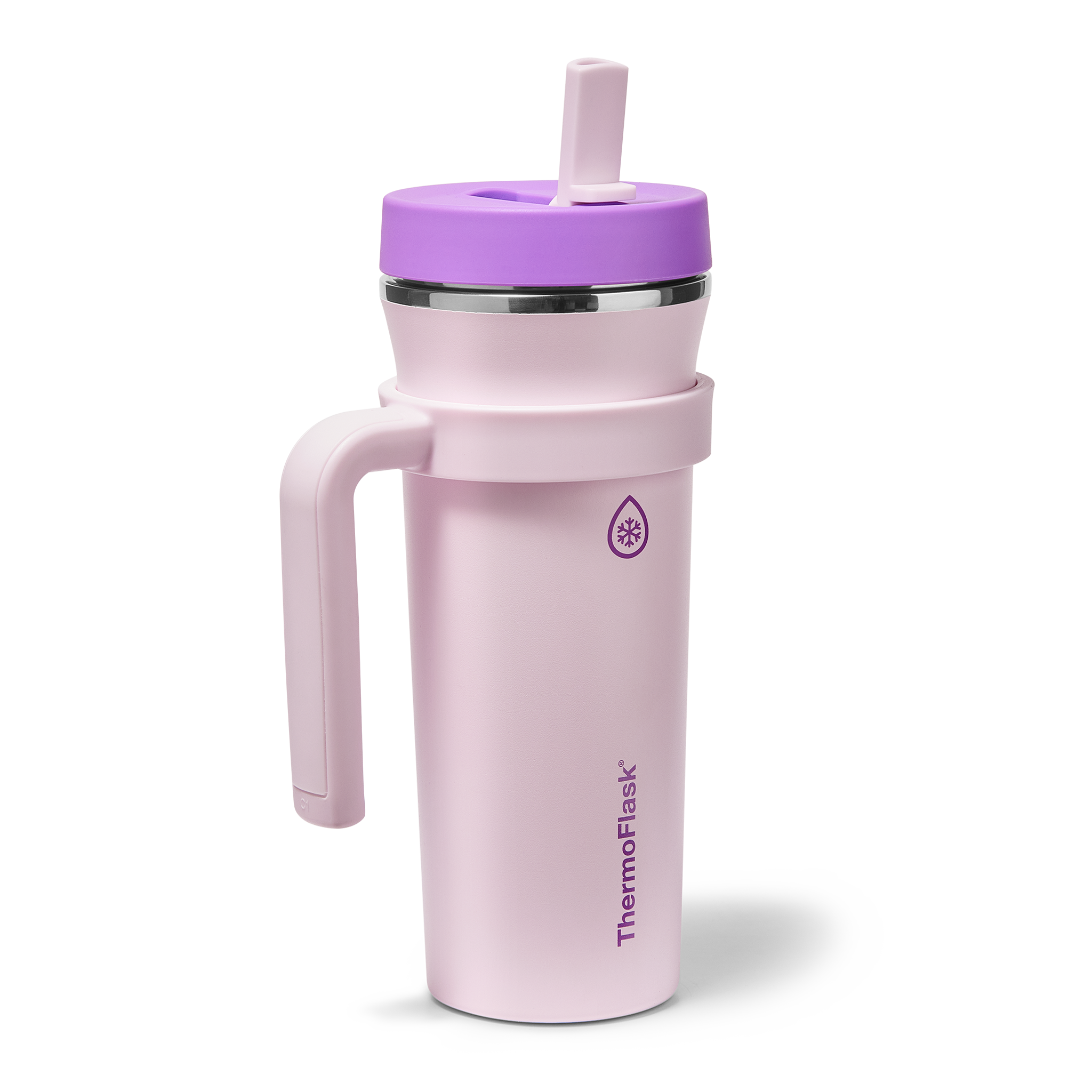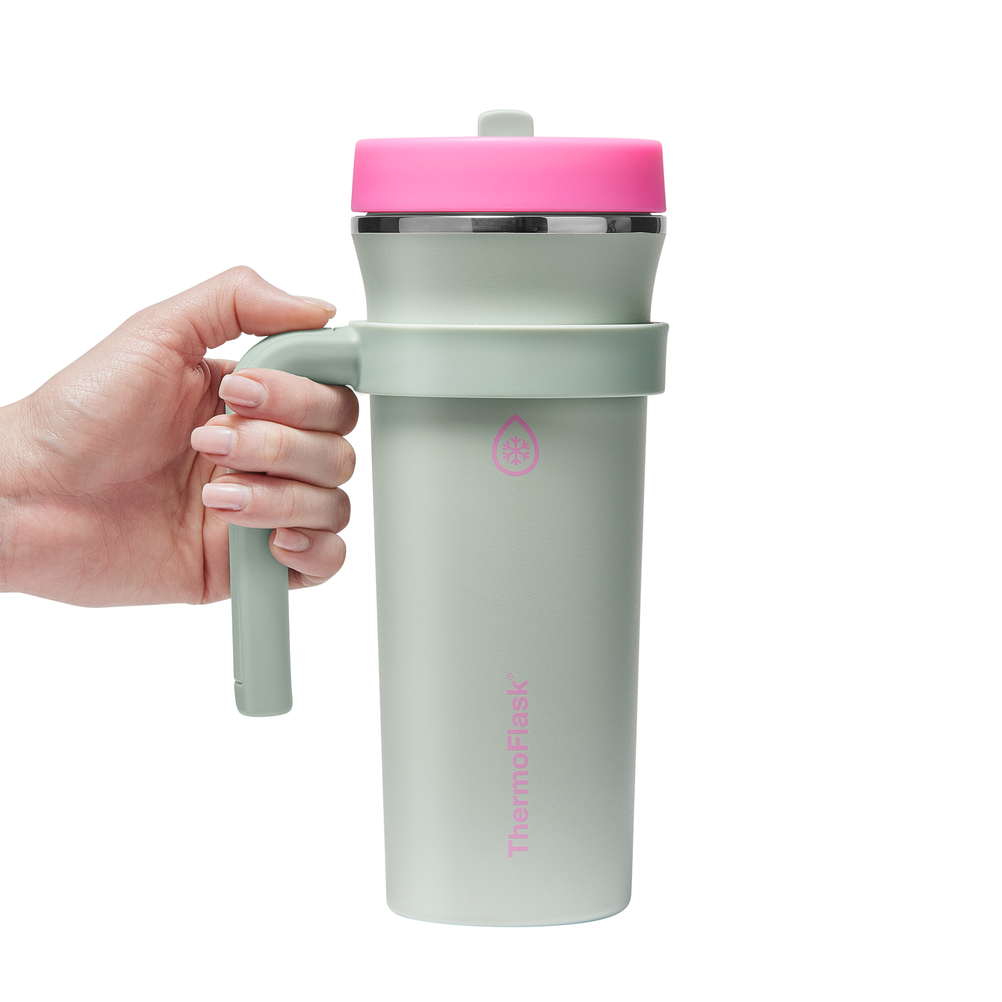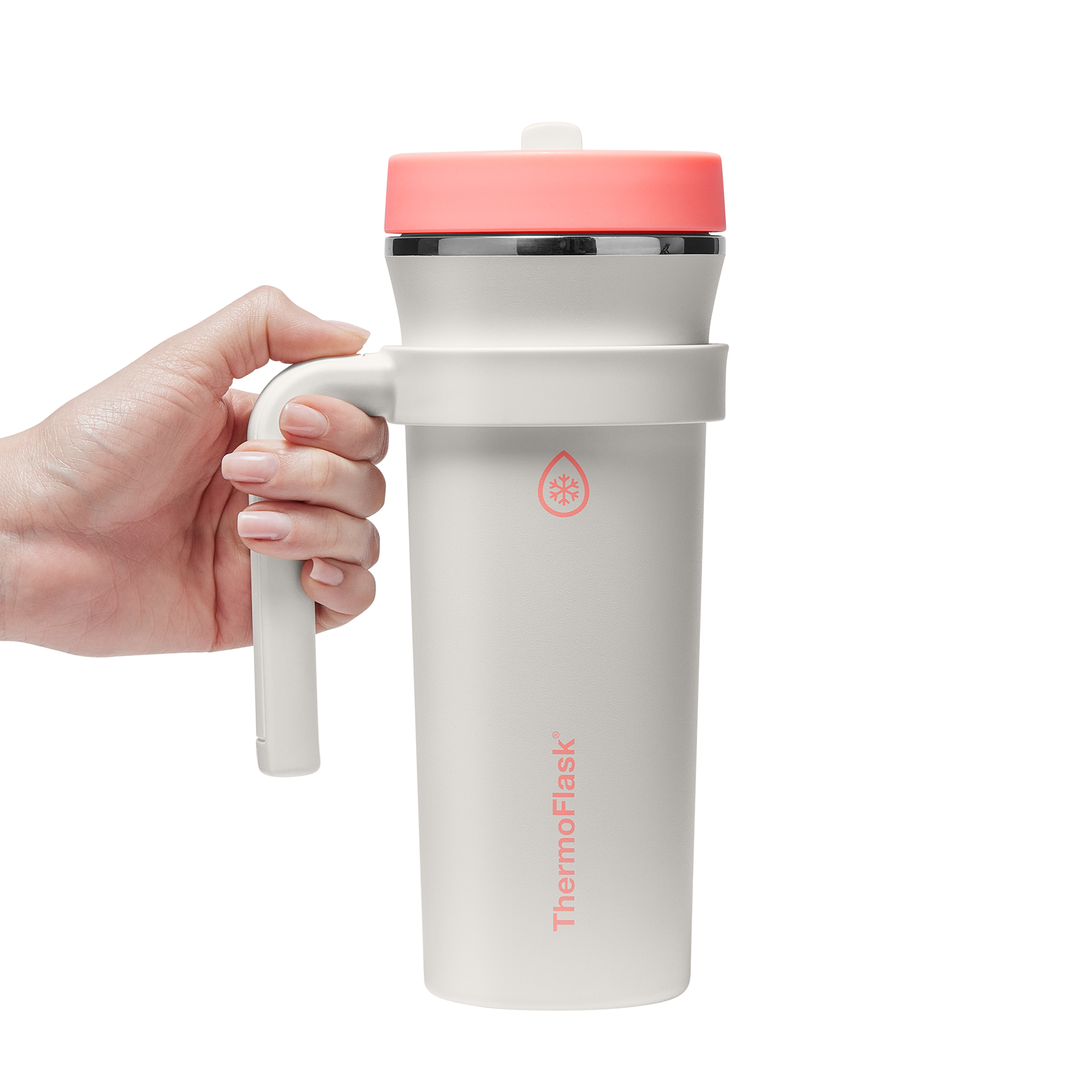 The 32oz ThermoFlask Tumbler keeps things icy cold and ready to sip all day long. The leakproof. folding straw lid means no spills when it’s shut and easy sipping when it’s not. A removable handle adds grab-and-go convenience. and the soft-landing silicone coaster keeps things quiet when you set it down. Big sips. zero drama.