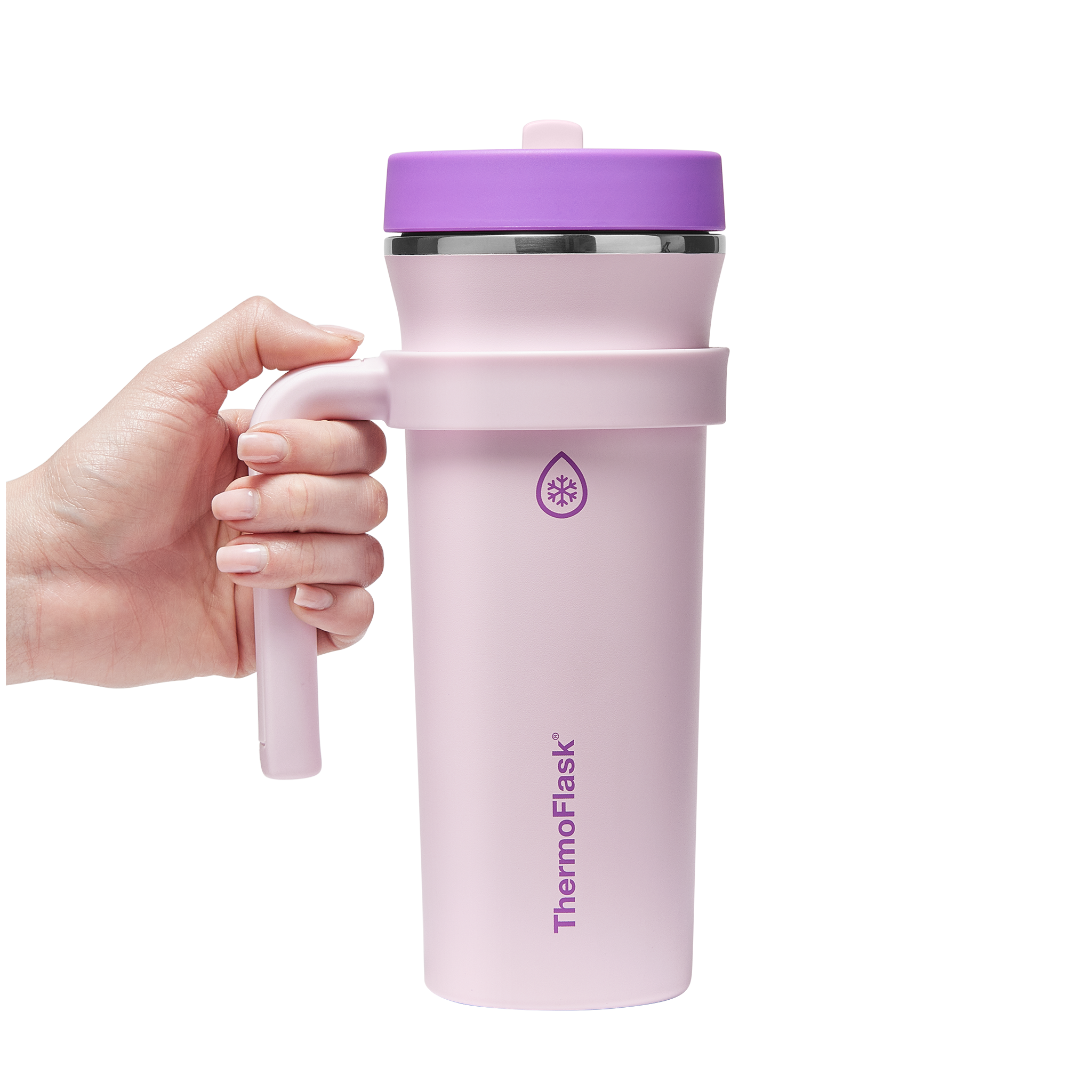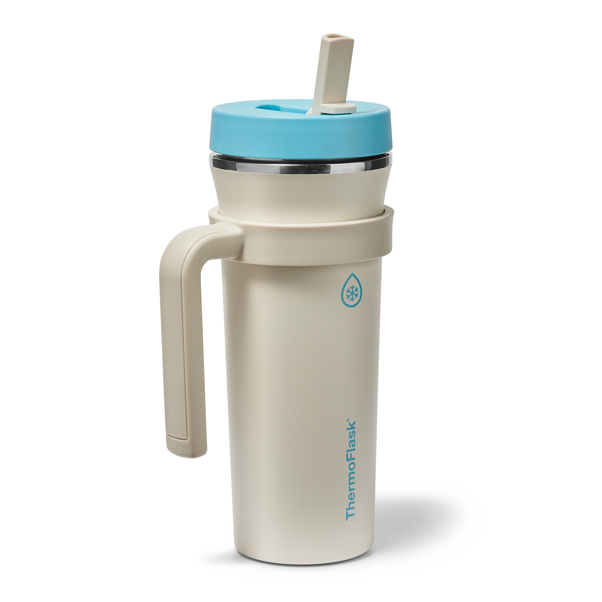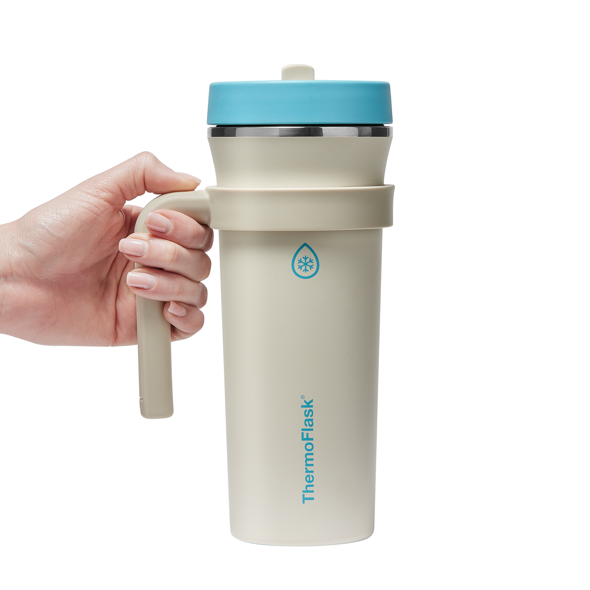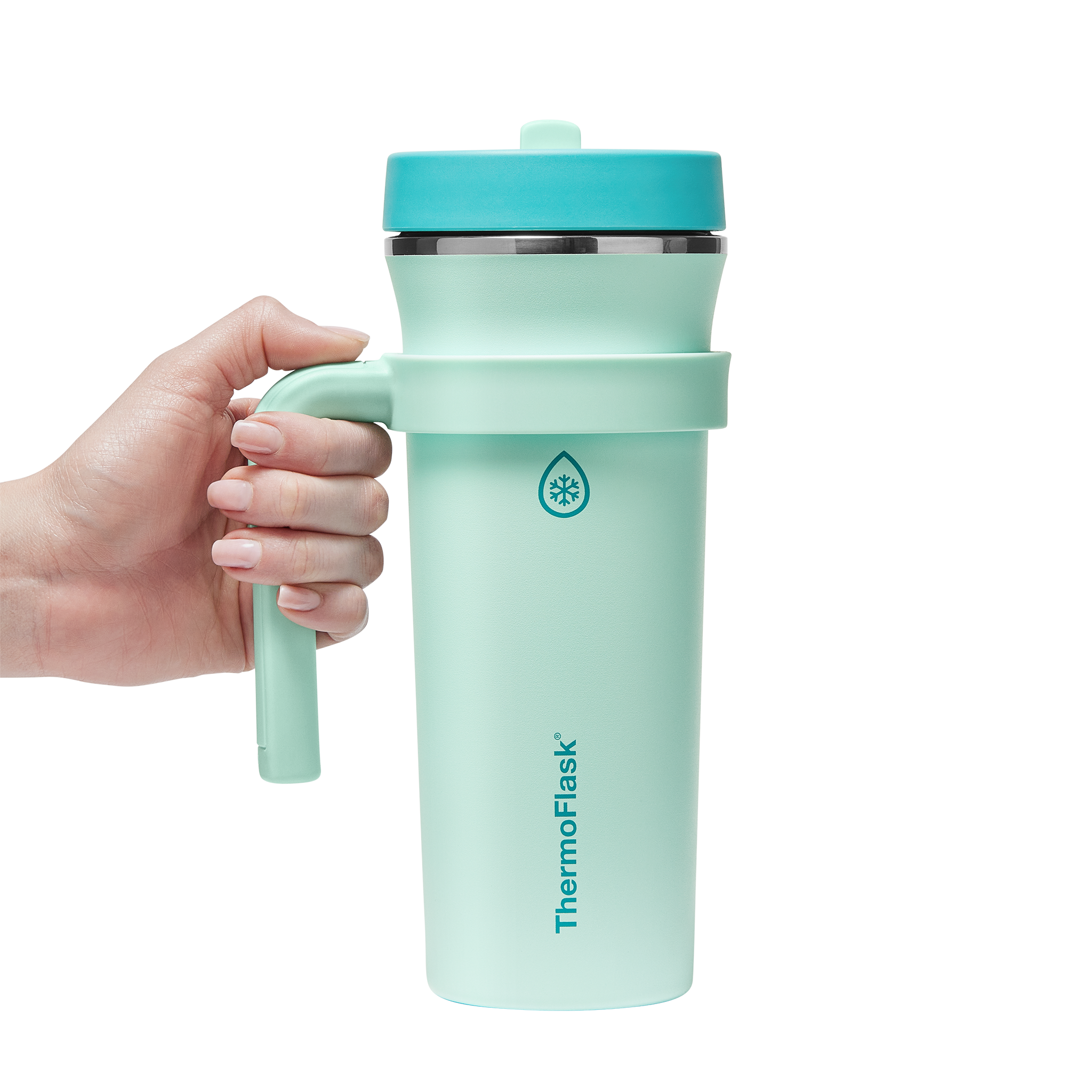 The 32oz ThermoFlask Tumbler keeps things icy cold and ready to sip all day long. The leakproof. folding straw lid means no spills when it’s shut and easy sipping when it’s not. A removable handle adds grab-and-go convenience. and the soft-landing silicone coaster keeps things quiet when you set it down. Big sips. zero drama.