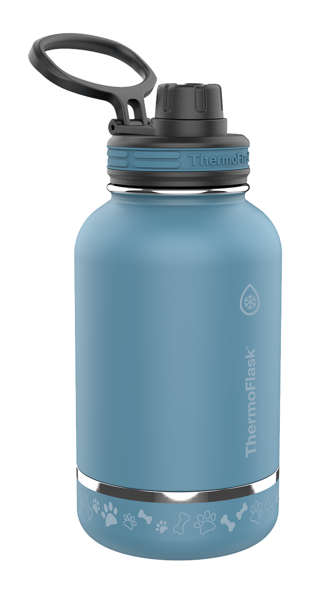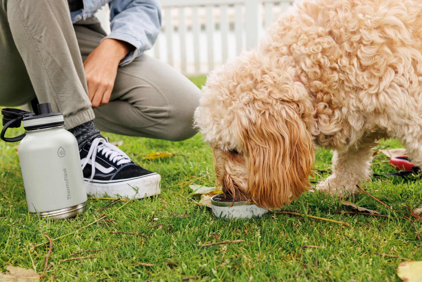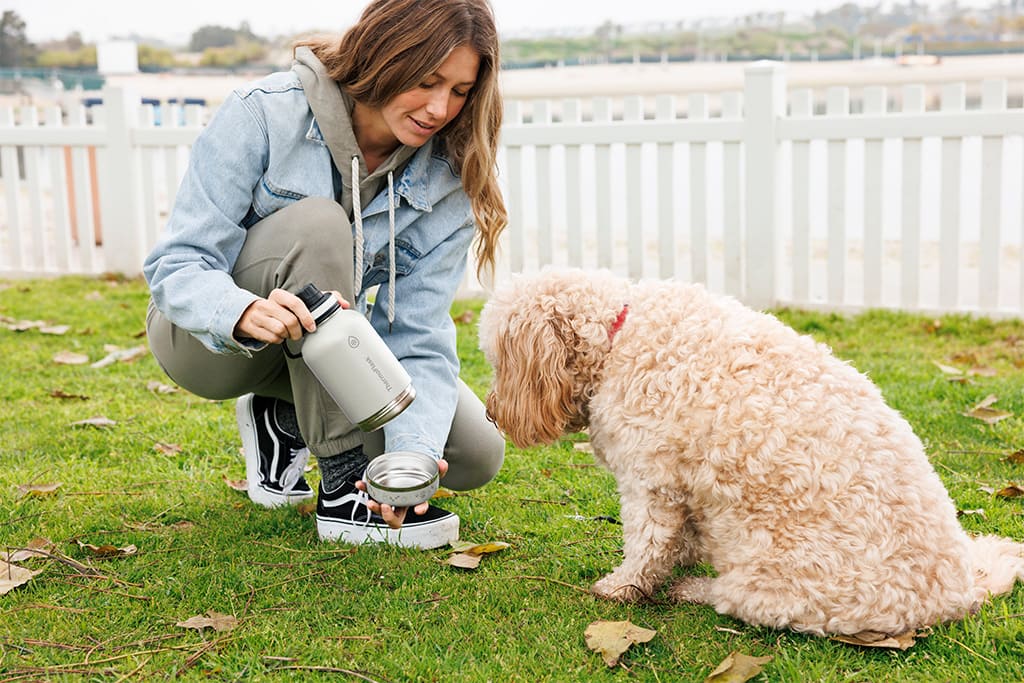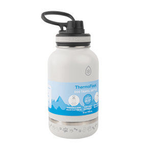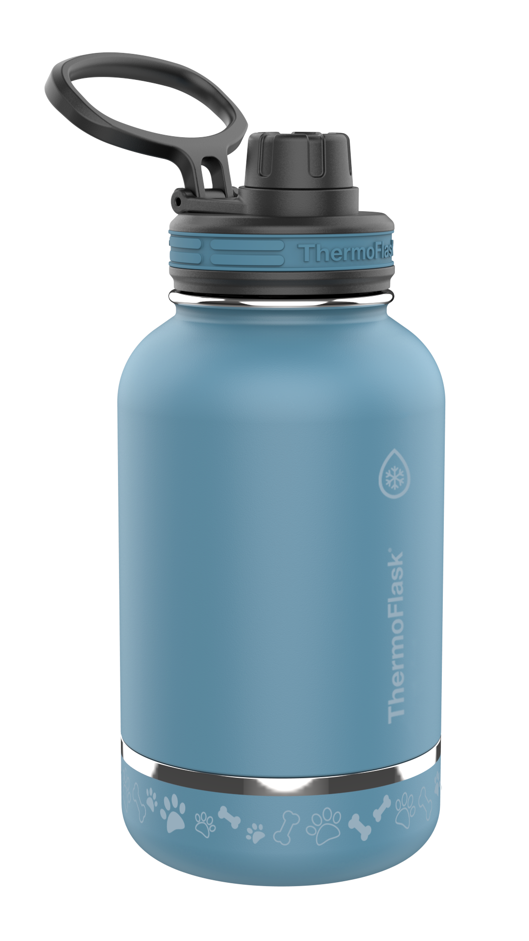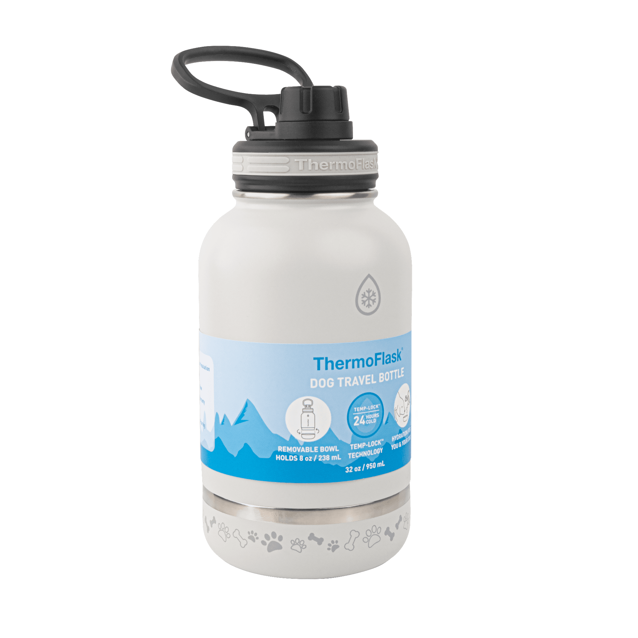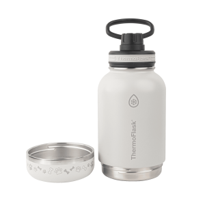 Designed for convenience with a leakproof spout lid. this bottle ensures easy pouring and sipping. Your pet’s hydration and snack needs are covered with the removable stainless steel 8oz dog bowl. while the double-wall vacuum insulation keeps water at the perfect temperature.