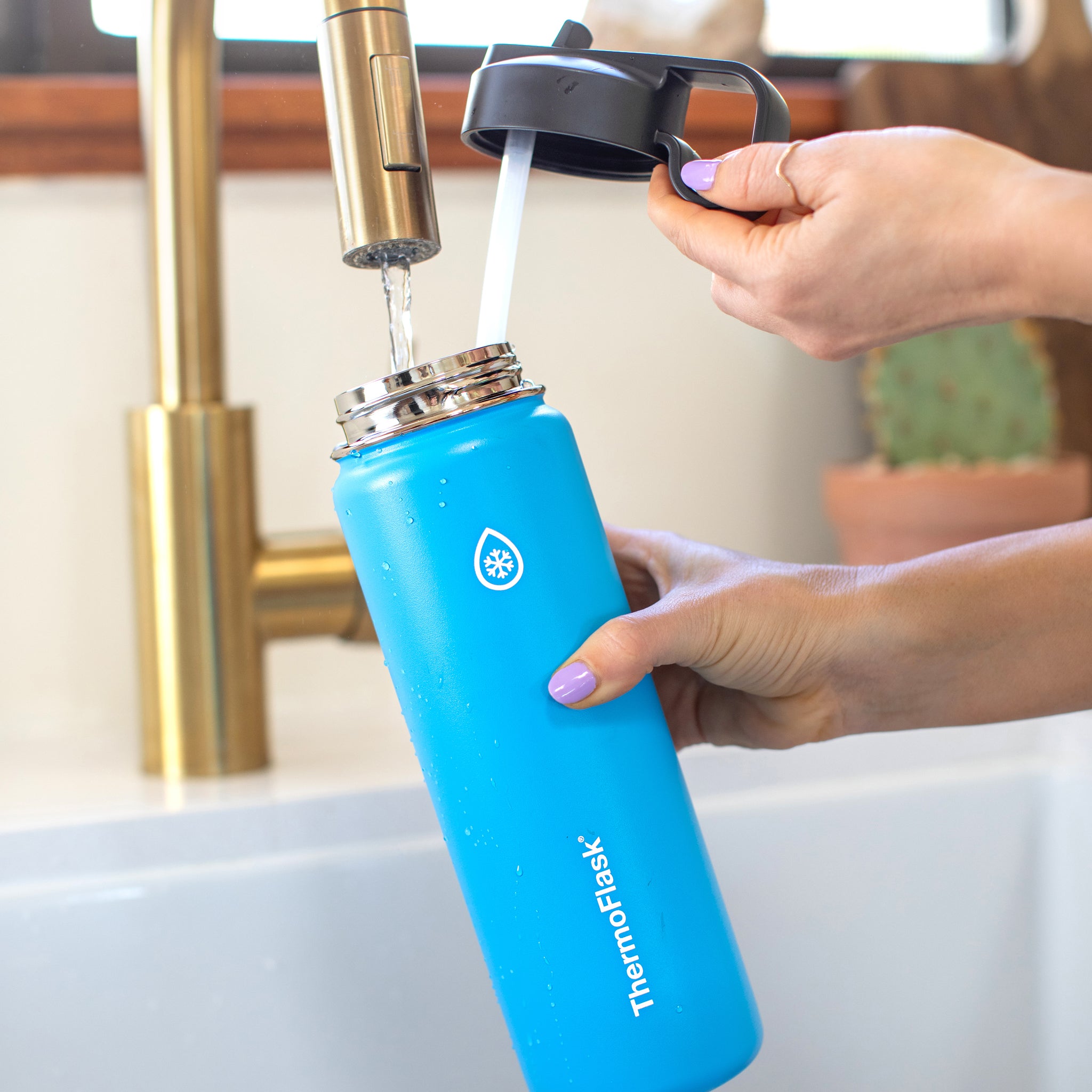 Keep your drink cold for up to 24 hours. or hot for up to 12. Our double-wall vacuum insulated stainless steel bottles prevent outside temperatures from affecting the inside beverage temperature so your drink stays just the way you like it – all day long. Great for everyday adventures or outdoor activities like hiking. camping. biking. sports. picnics. and more. Drink the way you want with easy. controlled one-handed drinking. Chug or straw? Your choice. You get both!